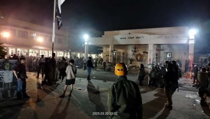 PERISTIWATERKINI.NET – Aksi unjuk rasa menolak revisi Undang-Undang Tentara Nasional Indonesia (UU TNI) di depan kantor DPRD DIY berakhir ricuh setelah polisi membubarkan massa secara paksa pada Jumat (21/3/2025) dini hari WIB.