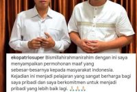 PERISTIWATERKINI.NET – Anggota DPR RI, Eko Hendro Purnomo atau Eko Patrio, akhirnya menyampaikan permohonan maaf terbuka kepada masyarakat Indonesia melalui video yang diunggah di…