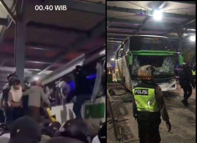 “Kondisi bus nyaris dibakar. Suasana benar-benar seperti perang jalanan,” kata Rina, seorang warga yang sempat merekam insiden.