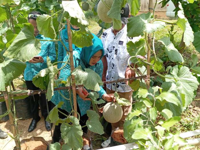 Kegiatan ini di akhiri dengan panen sayuran dan buah-buahan dari kebun binaan, warga bersama tim penilai memetik sayur kol, cabai dan buah melon yang siap di panen.