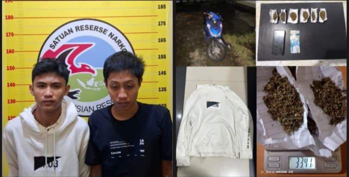 Setelah disepakati, lanjutnya, bertemu pada (7/1) sekira pukul 18.00 wib, Anggota sat narkoba Polres OKU langsung mengamankan dua orang laki-laki atas nama Adi Aldino (18) dan Reka Anggara (19).