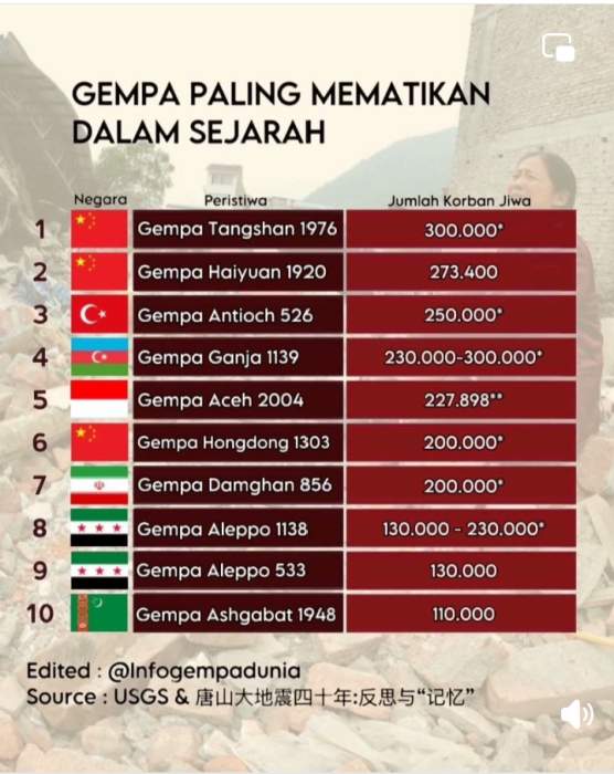 Untuk yang pertama ini kita akan membahas tentang Gempa Paling Mematikan didalam Sejarah manusia, yang dirangkum dari catatan dan data kejadian di masa lalu.