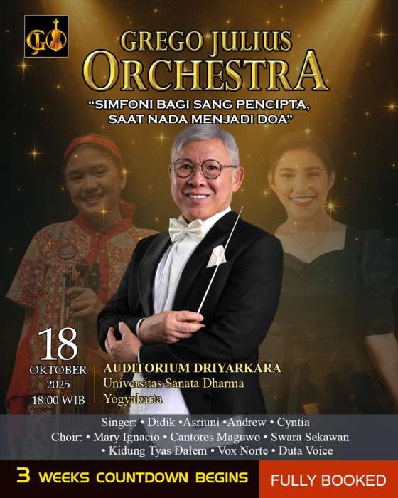 Semangat inilah yang dihidupkan Grego Julius dalam konser rohani bertajuk “Simfoni Bagi Sang Pencipta, Saat Nada Menjadi Doa” di Auditorium Driyarkara, Universitas Sanata Dharma Yogyakarta, Sabtu (18/10/2025).
