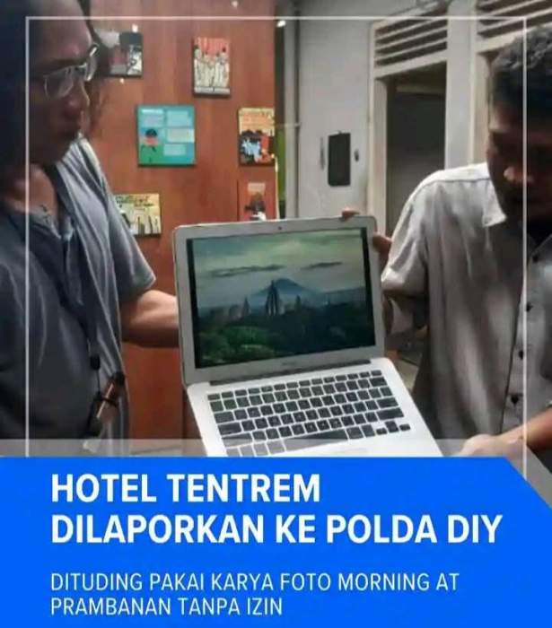 Jogja, Peristiwaterkini – Seorang fotografer asal Jogja melaporkan Hotel Tentrem ke Polda DIY karena diduga menggunakan fotonya tanpa izin di situs resmi hotel.