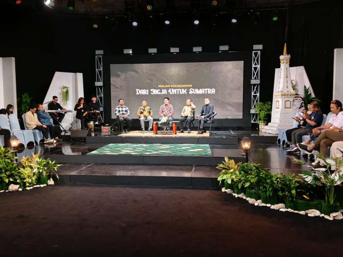 ‎Bersama perguruan tinggi, relawan, mahasiswa, JNE, serta TVRI Yogyakarta, KADIN DIY menggelar aksi kemanusiaan bertajuk “Malam Solidaritas: Dari Jogja Untuk Sumatra”, Senin (22/12/25) malam.