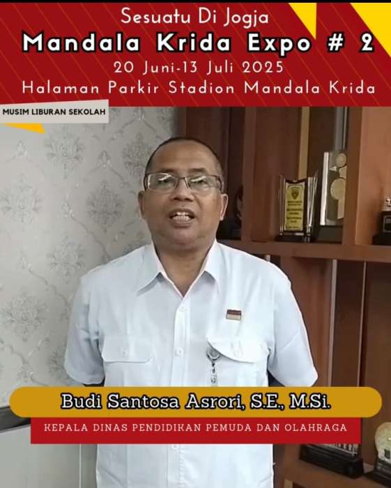 PERISTIWATERKINI.NET – Kepala Dinas Pendidikan, Pemuda, dan Olahraga (Disdikpora) Kota Yogyakarta, Drs. Budi Santosa, M.Si., menyambut positif rencana penyelenggaraan Mandala Krida Expo #2 yang akan digelar mulai tanggal 20 Juni – 13 Juli 2025 di halaman Parkir Stadion Mandala Krida.