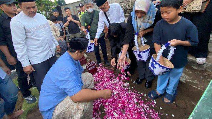 Prosesi pemakaman dimulai pukul 17.00 WIB, diikuti keluarga besar dan kerabat dekat.