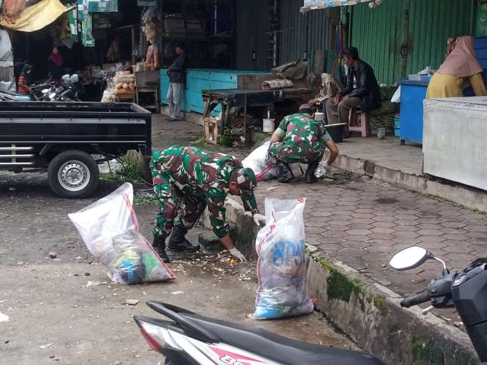 PERISTIWATERKINI.NET, Wonosobo – Koramil 06/Kretek Kodim 0707/Wonosobo menunjukkan kepeduliannya terhadap kebersihan lingkungan dengan ikut serta dalam Aksi Bersih Bersama di Pasar Kretek, Kecamatan Kretek, Kabupaten Wonosobo.