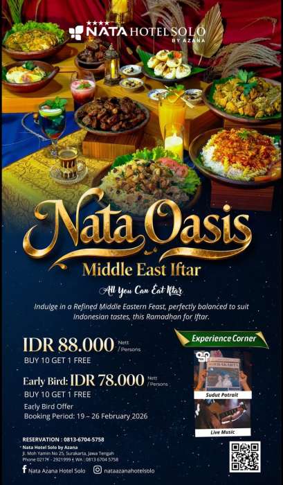 “Kami ingin menghadirkan pengalaman berbuka puasa yang berbeda, autentik, dan berkesan,” ujar Manajemen Nata Hotel Solo by Azana, dalam keterangan resminya, Senin (2/2/2026).