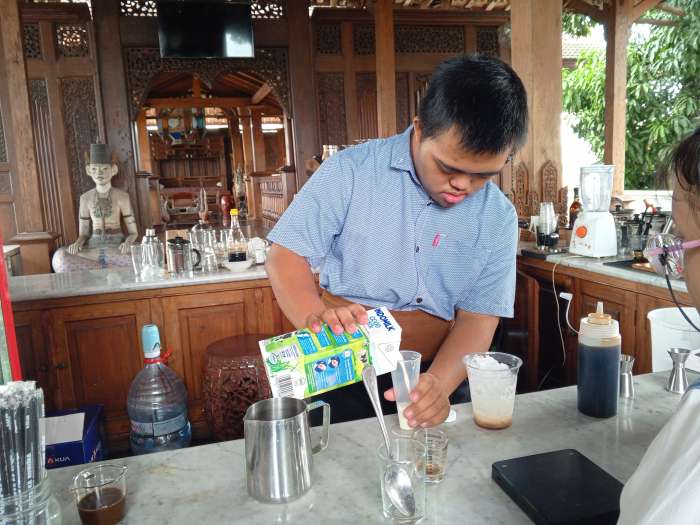 Menurutnya, pelatihan ini memberi pengalaman langsung bekerja di kedai kopi, sesuatu yang jarang didapatkan oleh remaja Down Syndrome.