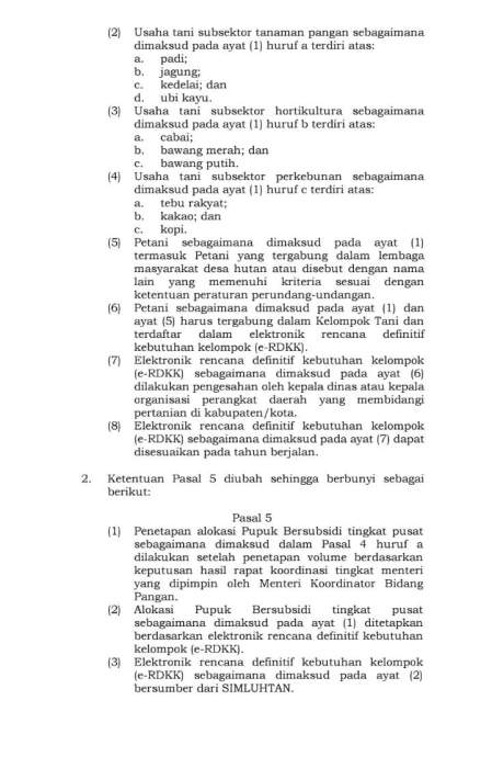 Dalam perubahan kebijakan ini, ubi kayu atau singkong kini masuk dalam daftar komoditas yang berhak menerima subsidi pupuk. Sebelumnya, subsidi pupuk hanya diberikan untuk tanaman pangan seperti padi, jagung, dan kedelai (PAJALE).