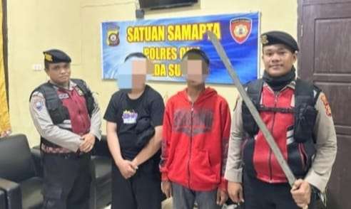 Petugas kemudian melakukan penyisiran dan berhasil mengamankan dua remaja bersama satu bilah senjata tajam jenis pedang.
