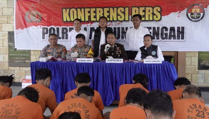 “Sebanyak 17 orang tersangka berhasil diamankan, dengan rincian 3 orang sebagai pengedar dan 14 orang lainnya sebagai penyalahguna narkotika jenis sabu-sabu,” kata Kapolres.
