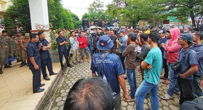 Mereka menyatakan penolakan terhadap pelantikan Penjabat (Pj) Kepala Desa Tanjung Kemala yang dijadwalkan berlangsung pada hari yang sama.