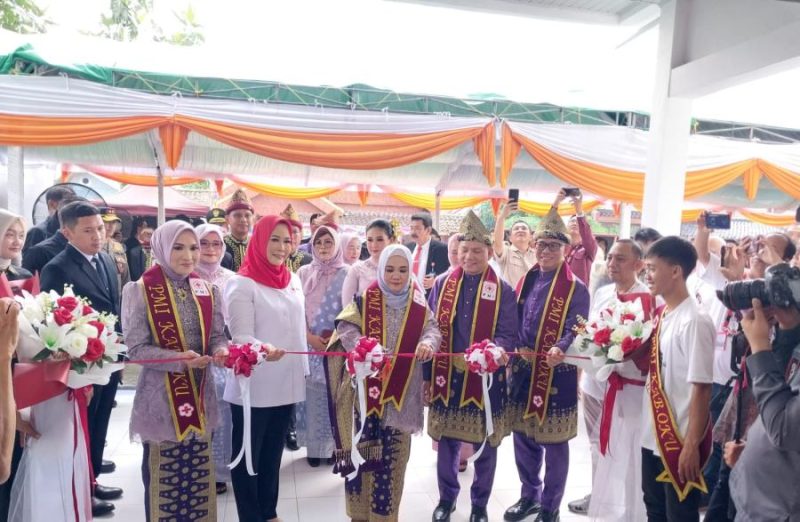 Setelah penandatanganan prasasti gedung PMI di buka dengan pengguntingan pita oleh PJ ketua TP PKK provinsi Sumsel Melza Elen Setiadi didampingi PJ ketua TP PKK OKU Hj Zwesty Karenia Teddy.