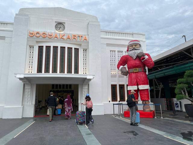 Jogja, Peristiwaterkini – Pemandangan unik hadir di Stasiun Yogyakarta. Sebuah patung Santa Claus raksasa setinggi lima meter berdiri megah di pintu timur, menyambut setiap penumpang yang datang dan berangkat menggunakan kereta api.