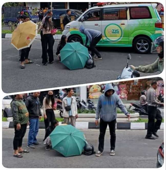 Insiden ini melibatkan seorang ibu-ibu pejalan kaki dan seorang pengendara sepeda motor yang datang dari arah utara.