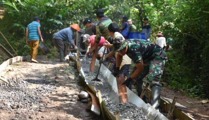 Melalui kegiatan gotong royong, jajaran Kodim 0707/Wonosobo dan warga setempat fokus melakukan pengecoran jalan demi memperbaiki akses dan mendukung kemajuan desa.