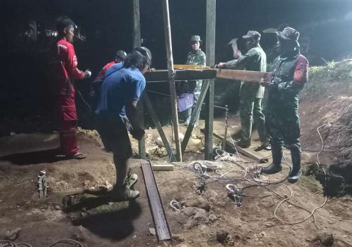 Selama cuaca mendukung, pekerjaan dimulai sejak pagi hingga berlanjut malam hari dengan bantuan lampu sorot.
