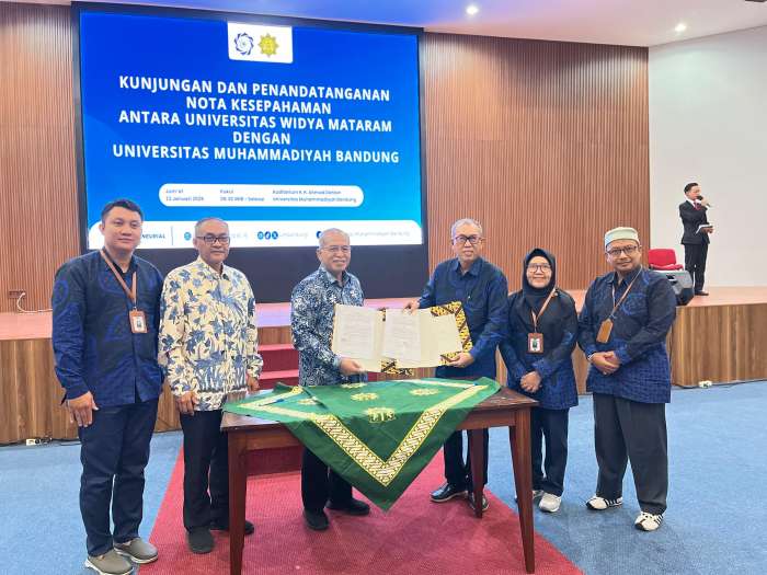 PERISTIWATERKINI.NET, Bandung – Universitas Widya Mataram Yogyakarta dan Universitas Muhammadiyah Bandung menandatangani Nota Kesepahaman sebagai wujud penguatan jejaring akademik nasional.